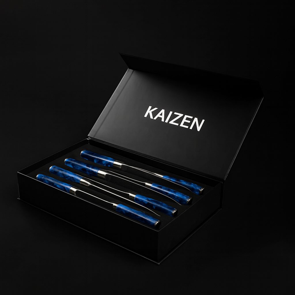 Forged from high-carbon Japanese steel, KAIZEN KNIVES Collection blends Samurai heritage with modern mastery. Each knife delivers razor-sharp precision, exceptional edge retention, and flawless balance — built to last a lifetime.